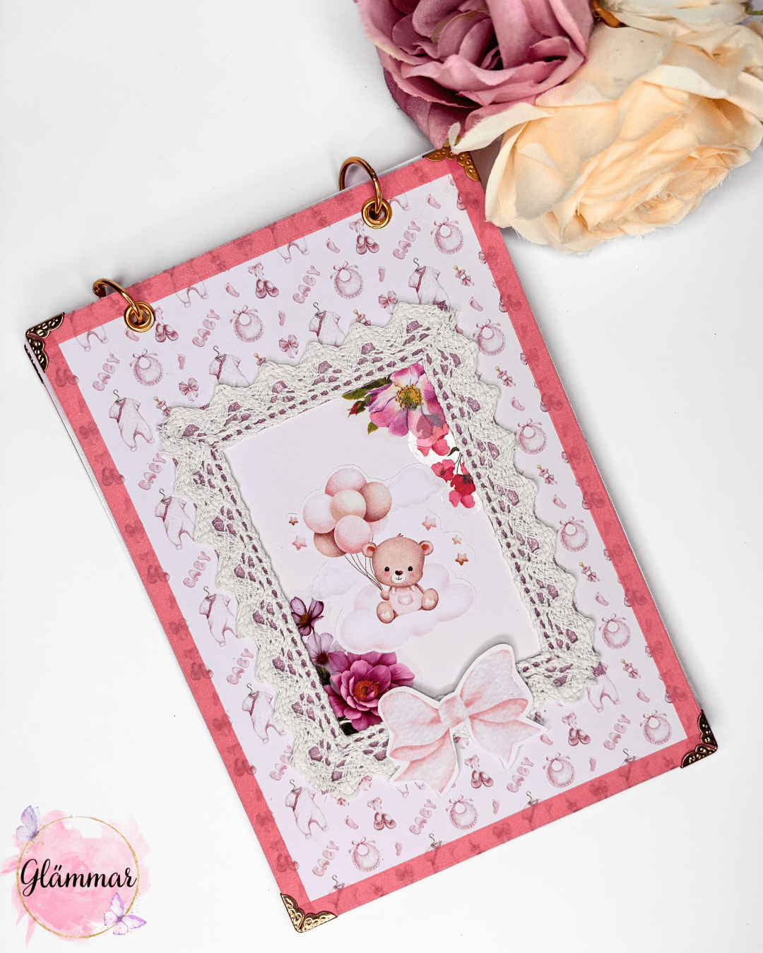 Käsitööna valminud beebiraamat, kuhu saab lisada pilte ja infot beebi esimese eluaasta kohta. Formaat on A5. Albumis on 12 kahepoolset lehekülge. Köiterõngad saab lahti teha, et lisada uusi lehti, ümbrikke või muid mälestusi.